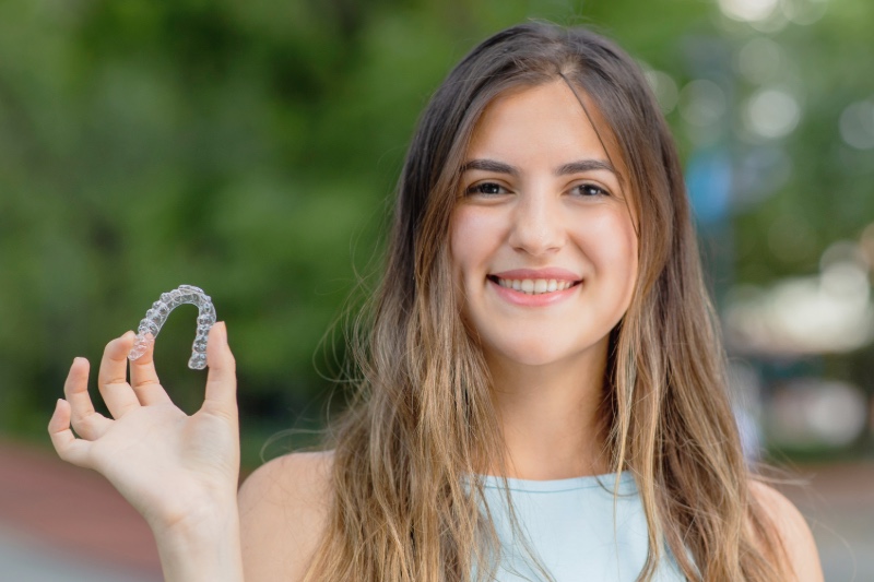 Clear aligners offer a comfortable, virtually invisible way to straighten your teeth. They’re removable, making eating and drinking easy during treatment.